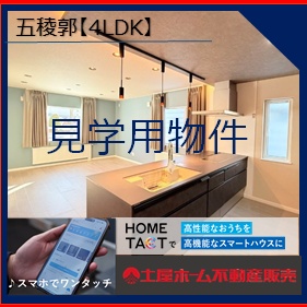 ここに注目!【完成公開】【見学予約受付中】【スマートホーム】函館市五稜郭町に、新生活を彩る素敵な新築戸建が誕生です!「スマートホームで快適で便利な暮らし」の名の通り、最新設備が充実した、ご家族皆様が笑顔になれるお住まいです。 広々とした4LDKは、南向きで陽当たりも良く、明るい毎日が期待できます。IHクッキングヒーターや食洗機付きのシステムキッチンは、お料理の時間を一層楽しくしてくれます。ウォークインクローゼットやシューズインクローゼットなど収納も豊富で、お部屋をいつもすっきりと保てるのが嬉しいポイント。太陽光発電システムも搭載されており、環境にも家計にも優しい住まいです。 生活のイメージにもなると思いますので、まずは「見るだけ」でも大歓迎です‼ お気軽にお問い合わせください。 ※2026年9月頃までの見学用物件です。