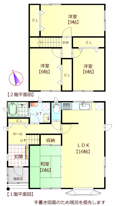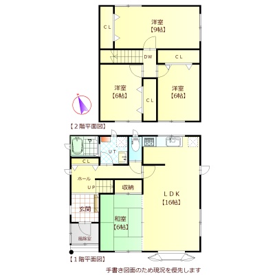 | 間取り | 4LDK1階:LDK16帖 和室6帖 / 2階:洋室9帖 洋室6帖 洋室6帖 |