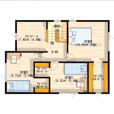 | 間取り | 4LDK1階:LDK16.6帖 洋室4.5帖 / 2階:洋室8帖 洋室5.9帖 洋室5.6帖 その他4.5帖 |