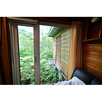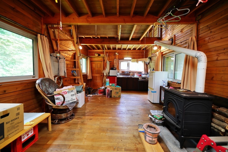 ここに注目!【趣味に没頭するあなたの秘密基地に】林間型リゾート地によく調和する小型のログハウスです。居住スペースは薪ストーブを備えたリビングと寝室になるロフトのみ。こちらの別荘はファミリーや夫婦で過ごすことを全く想定していません。誰にも邪魔されないあなたひとりの充実した時間を過ごすために是非お使いください。