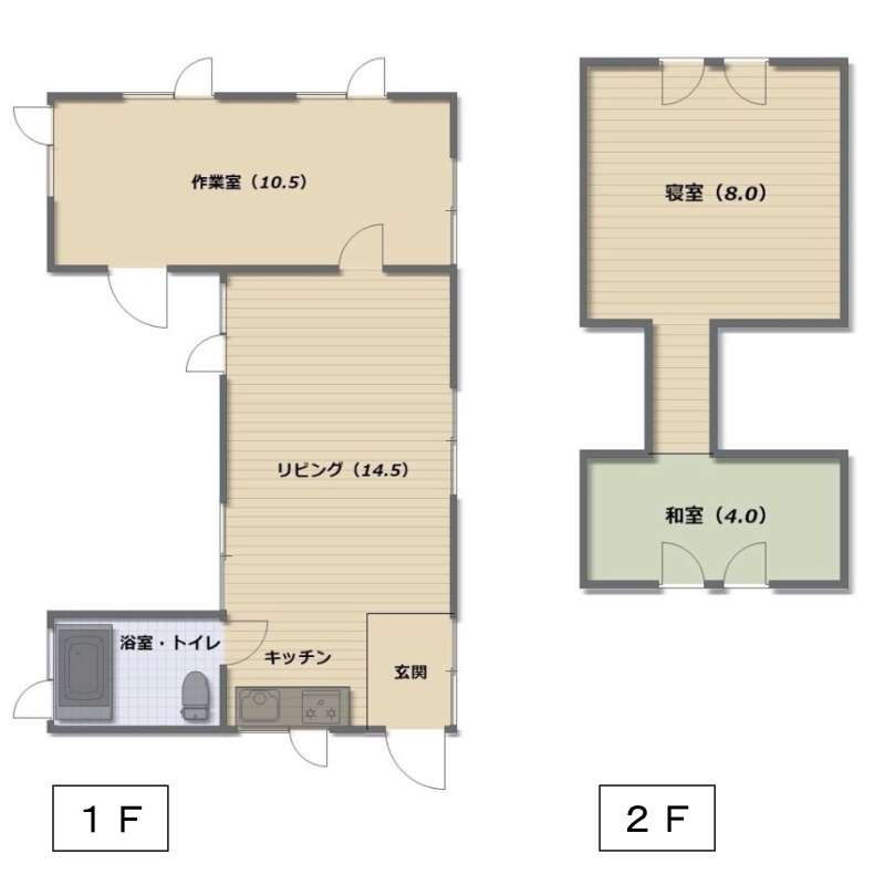 | 間取り | 2SLDK1階:LDK14.5帖 その他10.5帖 / 2階:洋室8帖 和室4帖 |
