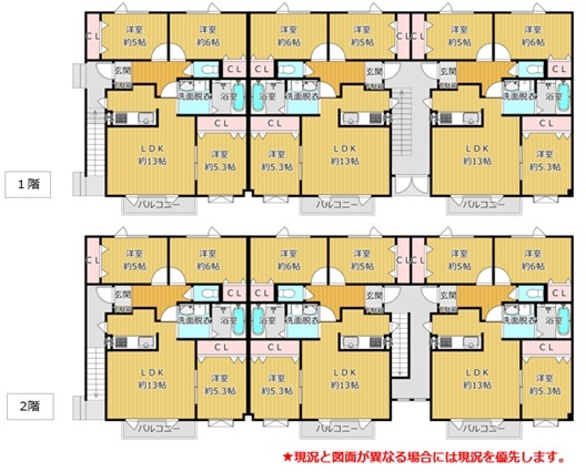 建物の階建 地上2階建 間取り 3LDK×6戸 駐車場 あり接道状況 - 西側幅5.10mの公道に接道