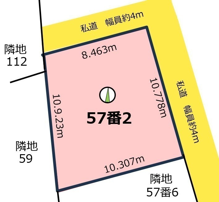 総区画数-/- 接道状況 角地 - 北東側幅4.00mの私道に10.77m接道 位置指定:有