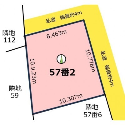 - 北西側幅4.00mの私道に8.46m接道 位置指定:有