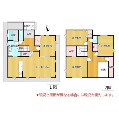 | 間取り | 4LDK1階:洋室6帖 / 2階:洋室6帖 洋室6帖 洋室8帖 / その他:LDK19帖 |