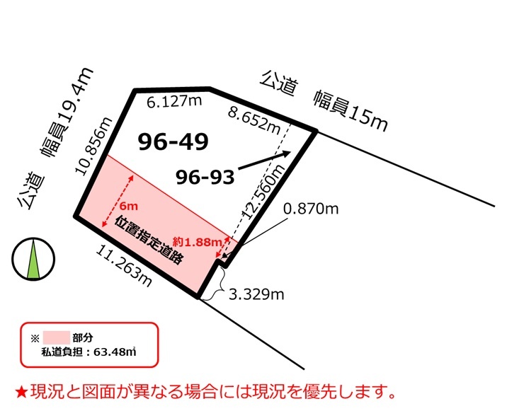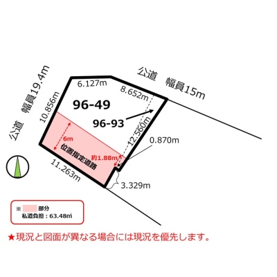 - 南側の私道に接道 位置指定:有