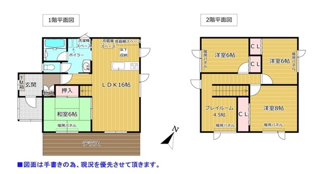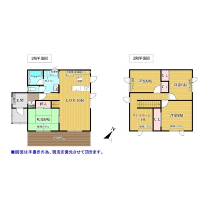 | 間取り | 4SLDK1階:LDK16帖 和室6帖 / 2階:洋室8帖 洋室6帖 洋室6帖 その他4.5帖 |