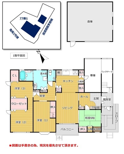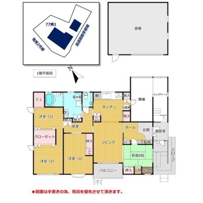 備考 ※電柱 敷地利用料収益あり ※自販機販売手数料収益あり ※右手倉庫 未登記部分になります 学区色がついているアイコンをクリックすると、本物件までの道順を見ることができます。