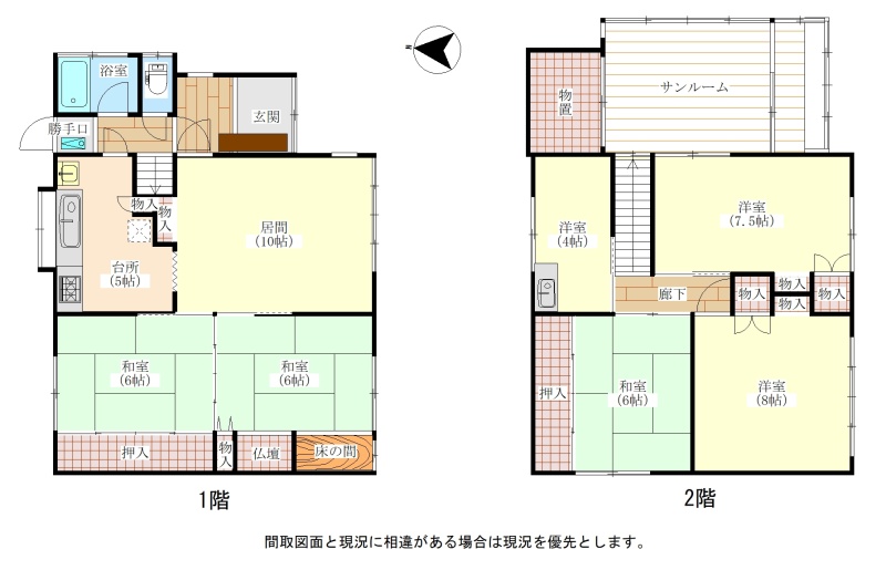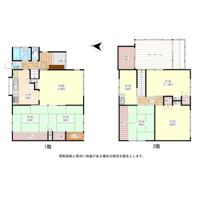 | 間取り | 6LDK1階:LD10帖 K5帖 和室6帖 和室6帖 / 2階:洋室8帖 洋室7.5帖 洋室4帖 和室6帖 |