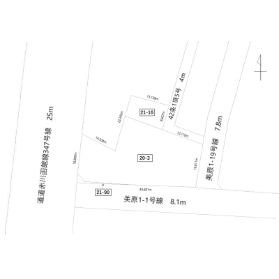 | 接道状況 | 角地 西側幅25.00mの公道に18.90m接道 / 南側幅7.80mの公道に45.68m接道 / 東側幅7.80mの公道に16.81m接道 / 北側幅4.00mの私道に16.58m接道 位置指定:有 |