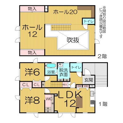| 間取り | 3LDK1階:LDK12帖 洋室8帖 洋室6帖 / 2階:その他32帖 |