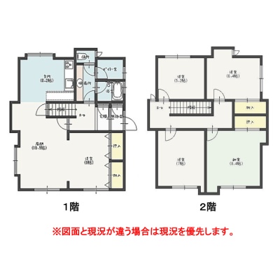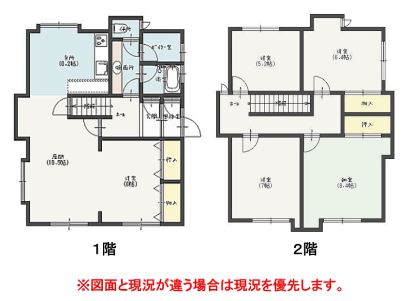 | 間取り | 5LDK1階:LDK16.7帖 洋室6帖 / 2階:洋室7帖 和室8.4帖 洋室5.2帖 洋室6.4帖 |