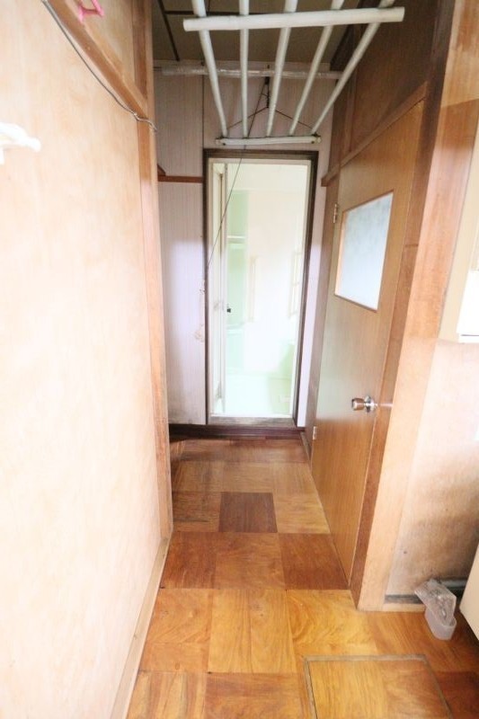 脱衣所、奥が浴室。左に洗濯機置き場