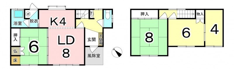 | 間取り | 4LDK1階:LDK12帖 和室6帖 / 2階:和室8帖 洋室6帖 洋室4帖 |