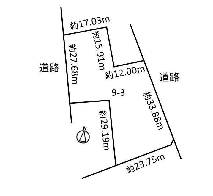総区画数-/- 接道状況 二方(除角地) - 北東側幅6.00mの公道に33.88m接道