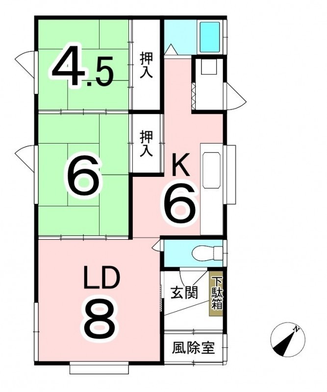 | 間取り | 2LDK1階:LD8帖 K5帖 和室4.5帖 和室6帖 |