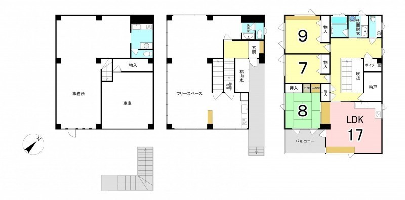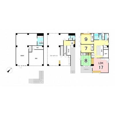ここに注目!3階を居住スペースとした間取りで、各居室内に床暖房有!どこの部屋にいても暖かく過ごすことが出来ます 全居室収納・廊下横には約3畳の納戸等、収納が豊富にあります! リビングからルーフバルコニーに出られるようになっています:南東向きです 2階にシステムキッチン・トイレ・洗面台といった水回りがあり、室内には大きな広間となっているフリースペース有 1階は貸事務所により賃貸中 80,000円/月 ビルドインガレージ駐車1台可