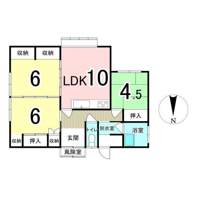 | 間取り | 3LDK1階:LDK10帖 洋室6帖 洋室6帖 和室4.5帖 |