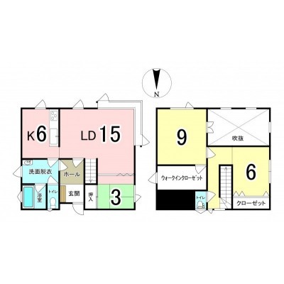 | 間取り | 3LDK1階:LDK15帖 和室3帖 / 2階:洋室9帖 洋室6帖 |