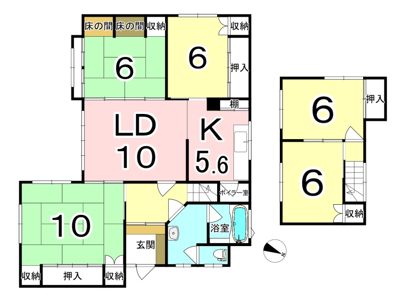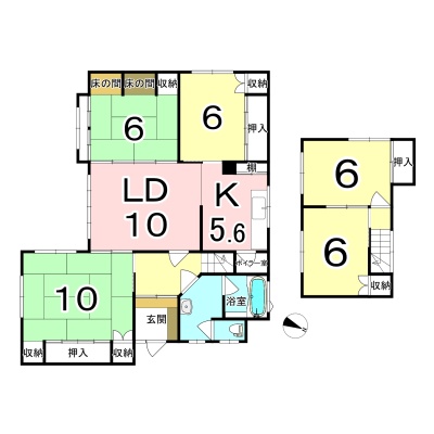 | 間取り | 5LDK1階:LD10帖 K5.6帖 和室10帖 和室6帖 洋室6帖 洋室6帖 洋室6帖 |