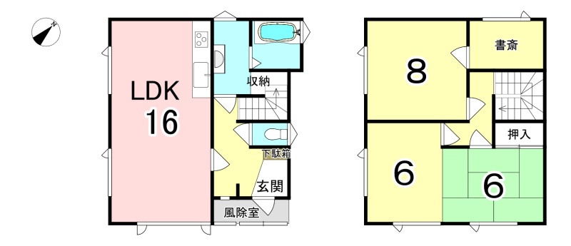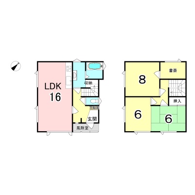 | 間取り | 3SLDK1階:LDK16帖 / 2階:洋室8帖 洋室6帖 S3帖 |