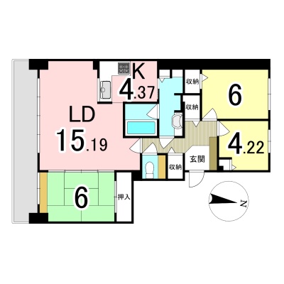 3LDK(83.49m²)└ 4階:LD15.1帖 K4.3帖 洋室6帖 洋室4.2帖 和室6帖