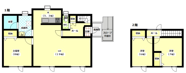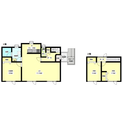 | 間取り | 3LDK1階:LD19帖 K5.3帖 洋室8帖 / 2階:洋室6帖 洋室7帖 |