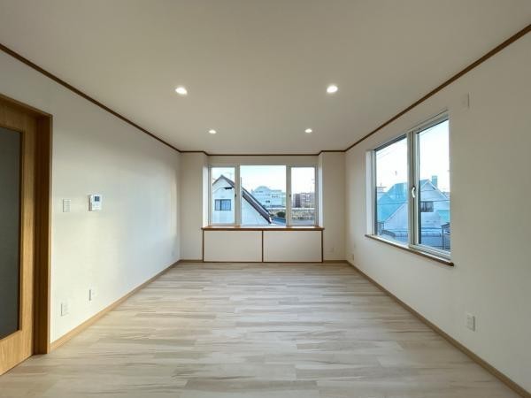 【2階リビング】床・クロス・照明交換いたしました。大きい窓か
