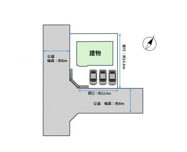 接道状況 二方(除角地) - 南東側幅8.00mの公道に接道