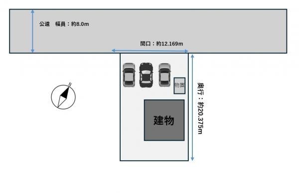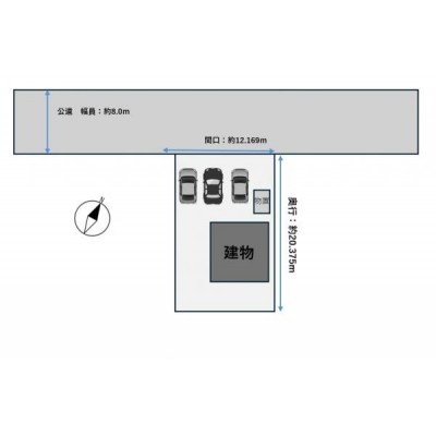 【区画図】駐車は並列3台可能です。建物の裏にもスペースがある