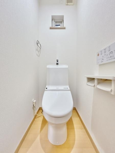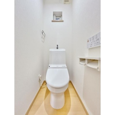 【リフォーム済 トイレ】温水洗浄機能付きの広めのトイレです。