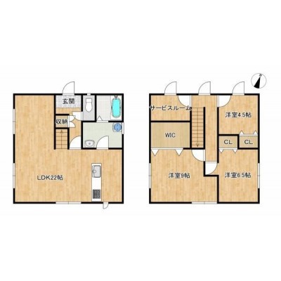 【間取図】LDKは広々22帖の対面キッチンです。3SLDKで