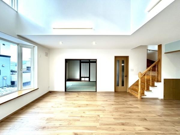 【リフォーム済】LDK18帖です。吹き抜けがございますので開