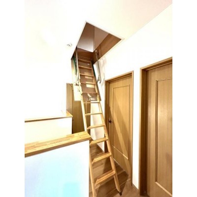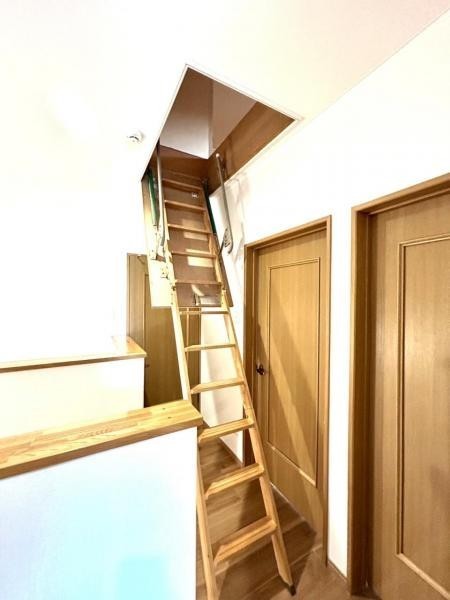 2階のホールには屋根裏へ上がる収納式階段があります。
