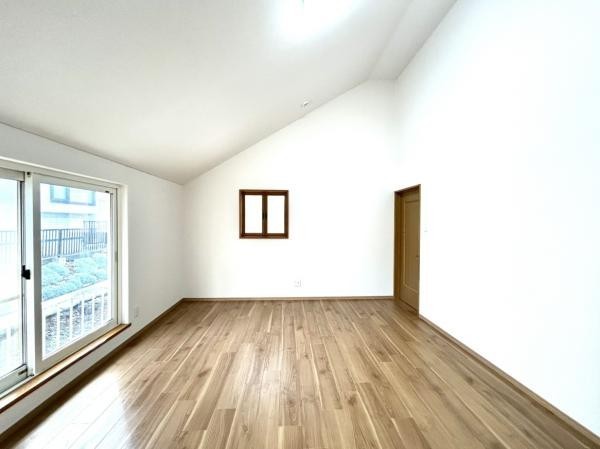【リフォーム済】2階洋室10帖です。天井が高く吹き抜けで開放