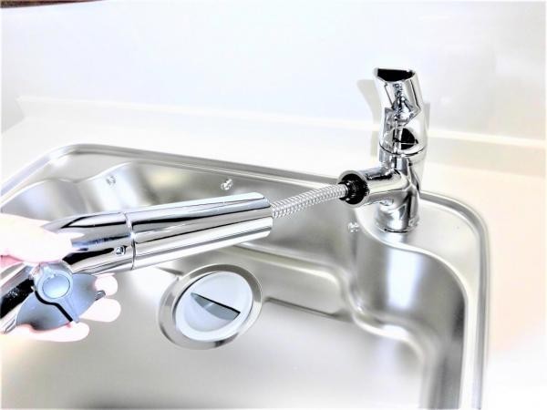 【同仕様写真】新品交換するキッチンの水栓金具はノズルが伸びて