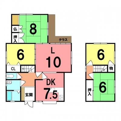 | 間取り | 4LDKL10帖 DK7.5帖 和室8帖 洋室6帖 和室6帖 洋室6帖 |