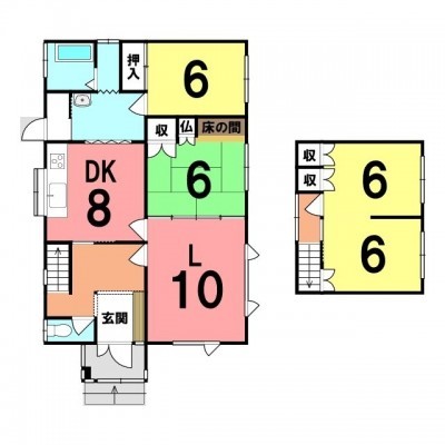 | 間取り | 4LDKL10帖 DK8帖 和室6帖 和室6帖 和室6帖 洋室6帖 |