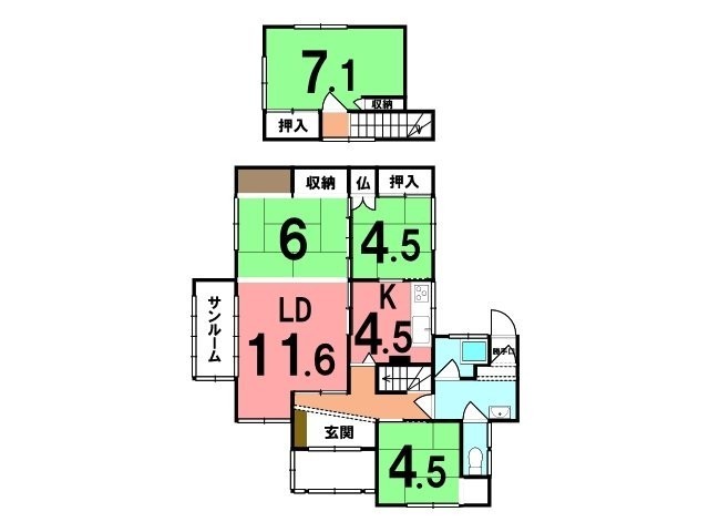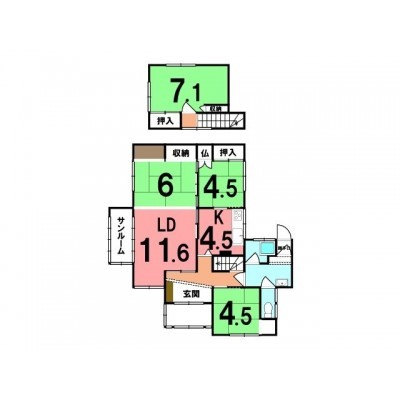 | 間取り | 4LDKLD11.6帖 K4.5帖 和室6帖 和室4.5帖 和室4.5帖 和室7帖 |