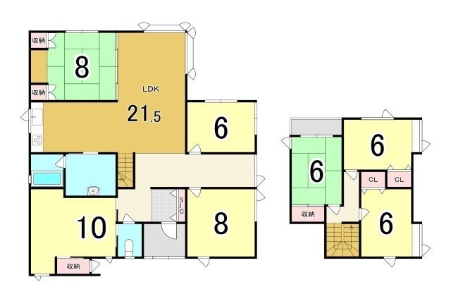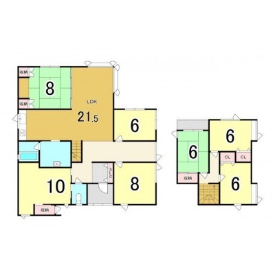 | 間取り | 7DK以上LDK21.5帖 和室8帖 洋室6帖 洋室8帖 洋室10帖 洋室6帖 洋室6帖 和室6帖 |