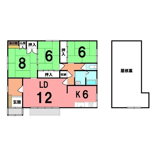 | 間取り | 3SLDKLD12.0帖 K6.0帖 和室8.0帖 和室6.0帖 和室6.0帖 S(納屋)19.0帖 |
