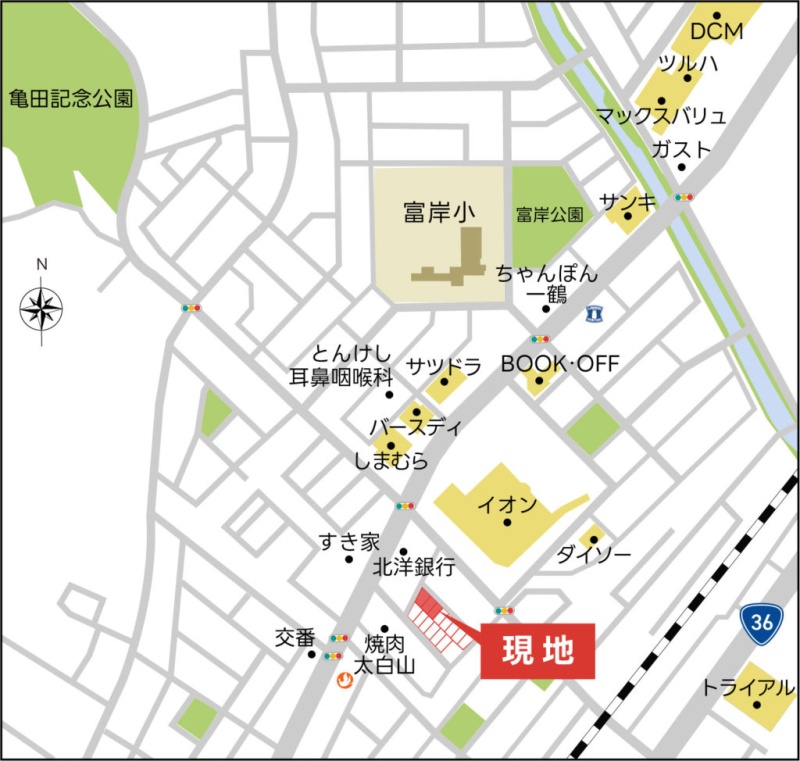 備考 <建築条件付分譲宅地について> 土地売買契約後3か月以内にイワクラホームと建築請負契約を締結していただくことを条件として販売いたします。この期間に住宅を建築しないことが確定したとき、または、住宅の建築請負契約が成立しなかった場合は白紙とし、土地売買契約の予約金はお返しいたします。 学区色がついているアイコンをクリックすると、本物件までの道順を見ることができます。
