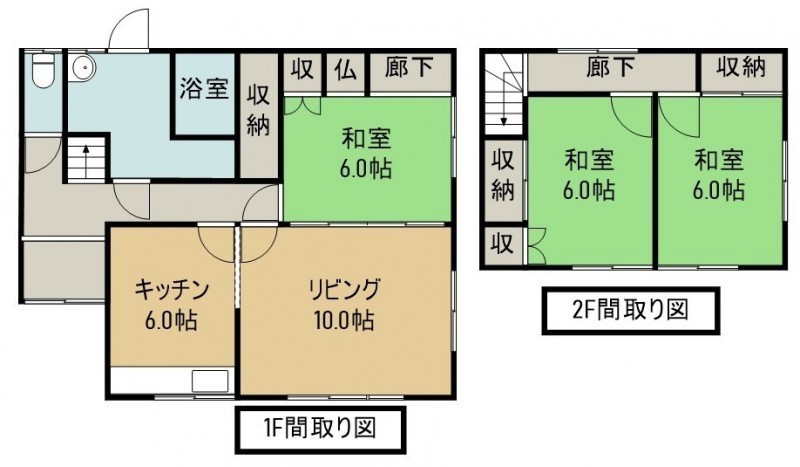 | 間取り | 3LDK1階:LDK16帖 和室6帖 / 2階:和室6帖 和室6帖 |