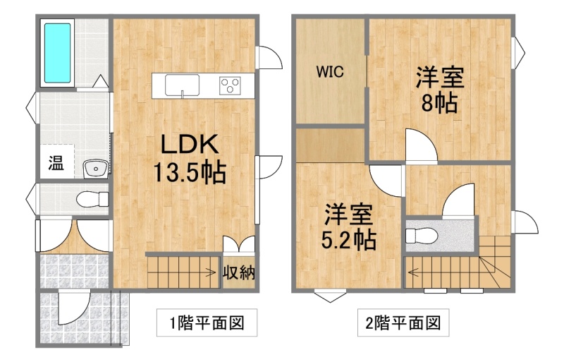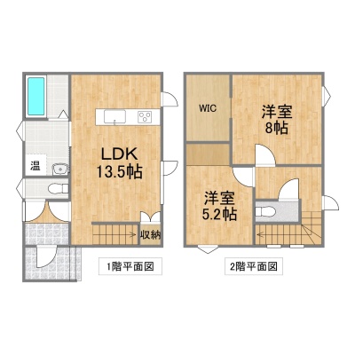 | 間取り | 2SLDK1階:LDK13.5帖 / 2階:洋室8帖 洋室5.2帖 S3帖 |