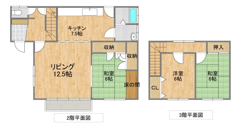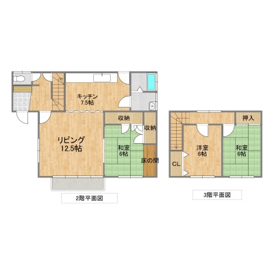| 間取り | 3LDK2階:LDK20帖 和室6帖 / 3階:洋室6帖 和室6帖 |