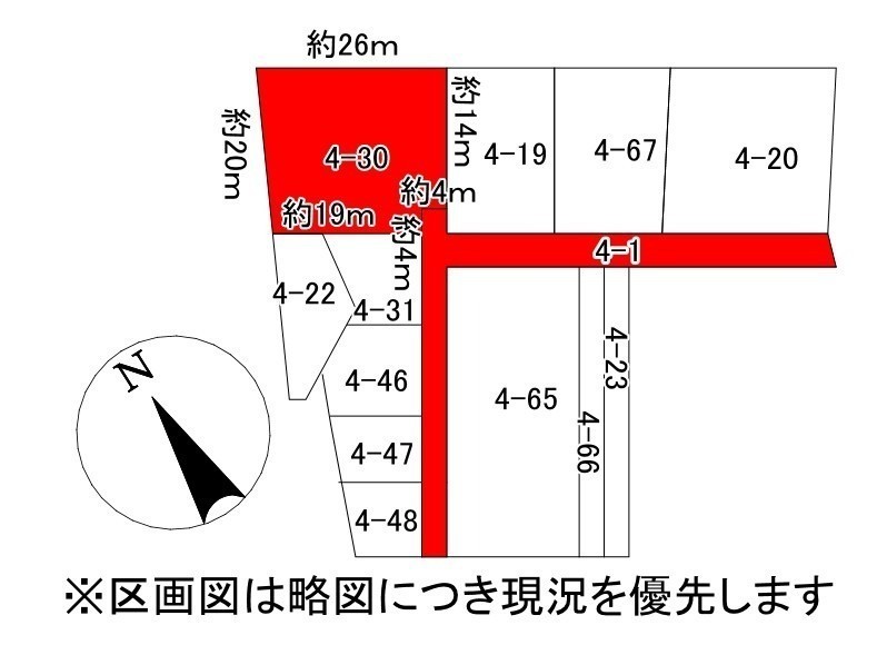 総区画数-/- 接道状況 - 南東側幅4.00mの私道に8.00m接道
