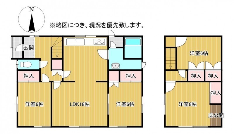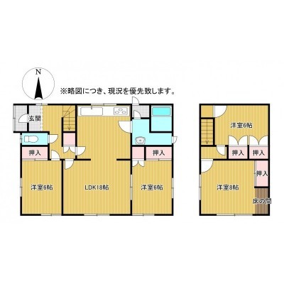 間取り 4LDK1階:LDK18帖 洋室6帖 洋室6帖 / 2階:洋室8帖 洋室6帖