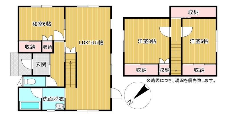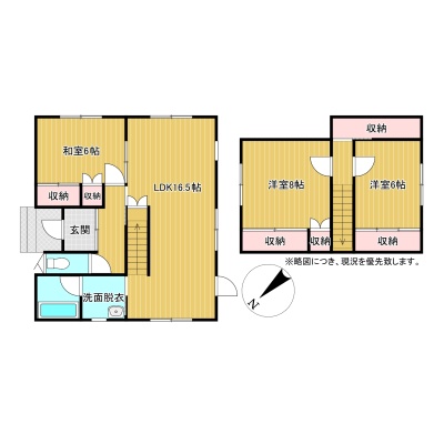 | 間取り | 3LDK1階:和室6帖 / 2階:洋室8帖 洋室6帖 / その他:LDK16.5帖 |