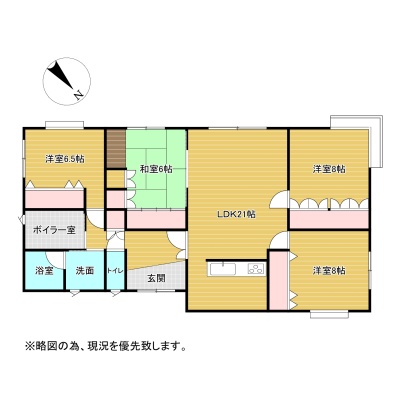| 間取り | 4LDK1階:LDK21帖 和室6帖 洋室8帖 洋室8帖 洋室6.5帖 |