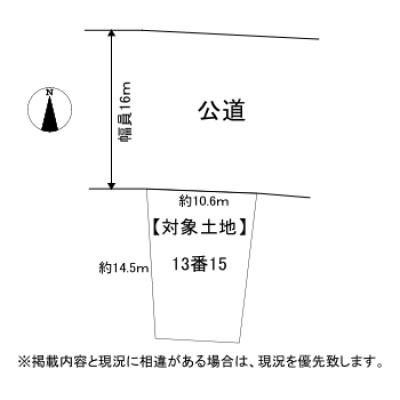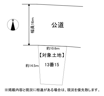 総区画数-/- 接道状況 一方 - 北側幅16.00mの公道に10.60m接道